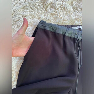 Derek Lam 10 Crosby Black High-Rise pants Leather Trim Pockets Drawstring size M