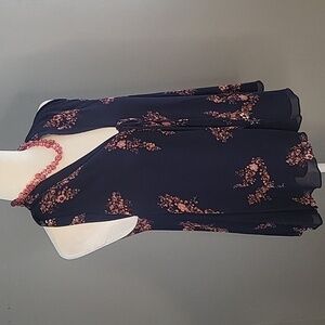 Derek Lam 10 Crosby Blue with Pink Floral V-Neck Flowy Sleeveless Top - Sz 2