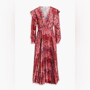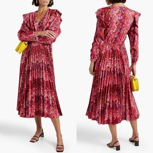Derek Lam 10 Crosby Chrishelle Pleated Midi Dress, Red Multi Size 0 New w/Tag