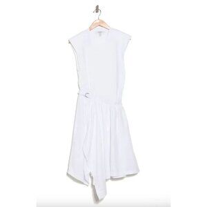 Derek Lam 10 Crosby Corey Mixed Media Belted Midi Dress White Womens Size Small