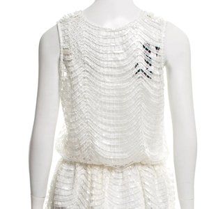 White Derek Lam 10 Crosby sleeveless top with crochet accent throughout, V-neck and sequin accents.