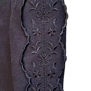 CROPPED BLACK PANTS WITH EMBROIDERED FEATURE DOWN SIDES
