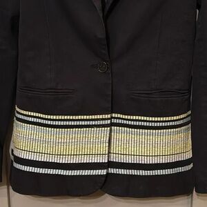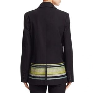Derek Lam 10 Crosby Embroidered Hem Blazer Jacket Black Stretch Cotton Size 0