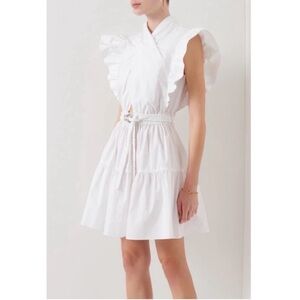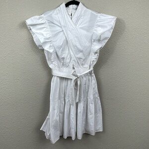 Derek Lam 10 Crosby Finn Ruffled Wrap Mini Dress Cotton Poplin White Sz 8