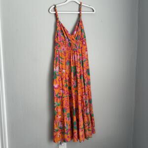 Derek Lam 10 Crosby Floral Midi Dress Orange Linen Cecelia Size 10