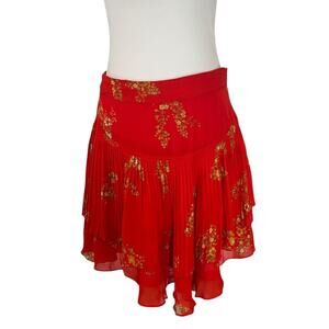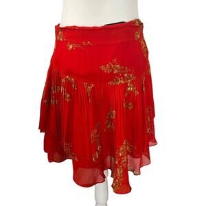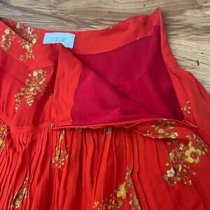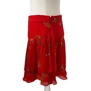 Derek Lam 10 Crosby Floral Red Pleated Ruffled Skirt Size 8