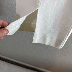These elegant white pants are perfect for any occasion. Crafted with a sleek design, they offer both style and comfort. There are a couple of surface stains in pictures. May come out when Dry cleaned