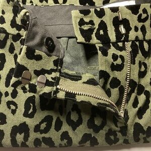 Size 0 Derek Lam 10 Crosby kick flare green & black leopard print jeans/pants. Cropped flare leg. Belt loops.
