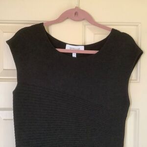 • Design details: soft knit upper with a flowy satin skirt, cap sleeves, A-line, directional ribbing throughout