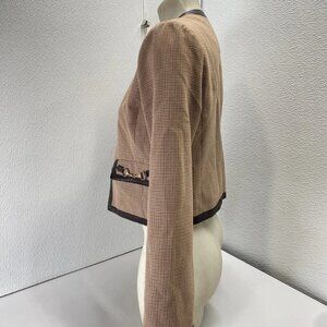 Refined and effortlessly modern, this jacket from the collaboration between Derek Lam 10 Crosby and Rent the Runway brings elevated tailoring and timeless style to your wardrobe. With its structured silhouette, elegant plaid pattern, and collarless neckline, it transitions seamlessly from work to weekend. The brown-toned version adds a warm, versatile neutral that pairs beautifully with trousers, skirts, or dark denim for a polished look.