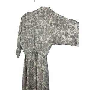 This dress embodies sophistication with its elegant floral pattern and luxurious silk blend. The open sleeve design offers a modern touch. Size 4 US