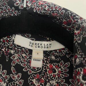 DEREK LAM 10 CROSBY Silk Sleeveless Button Up Layered Dress Size 0 Paisley Print Collared Sleeveless 100% Silk Layered Black Red No Stretch