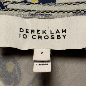 EUC! Derek Lam 10 Crosby silk tiered floral midi dress in a women's size 2. Silk crepe in a very light gray and white with navy blue floral print. Single button closure on side under arm. Fully lined.