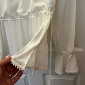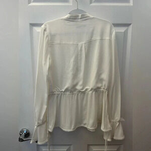 . Derek Lam 10 Crosby Size 6 white Long Sleeve Surplice V-Neck Silk Blouse