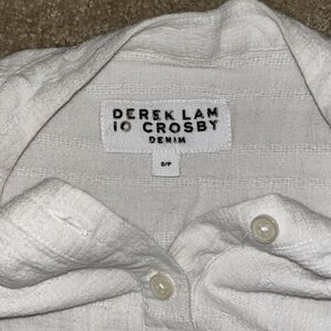 Derek Lam 10 Crosby (Small/Petite) Womens White Subtle Textured 1/4 Buttons Top