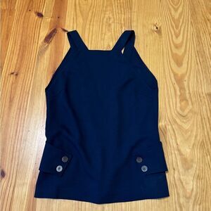 Derek Lam 10 Crosby Square Neckline Tank V-Back Navy Blue Buttons Women’s MED