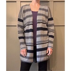 Derek Lam 10 Crosby Striped Wool Open Front Cardigan Sweater Gray Black Sz Large