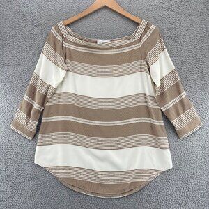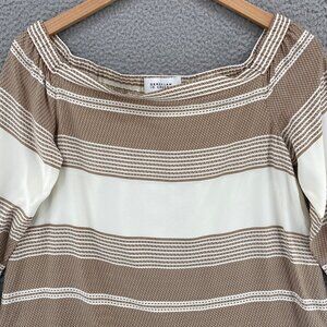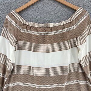 Derek Lam 10 Crosby Top Womens 10 Brown Pattern Silk Off Shoulder Long SleevesPullover