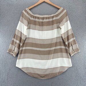 Derek Lam 10 Crosby Top Womens 10 Brown Pattern Silk Off Shoulder Long Sleeves*