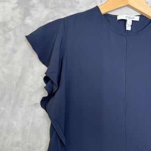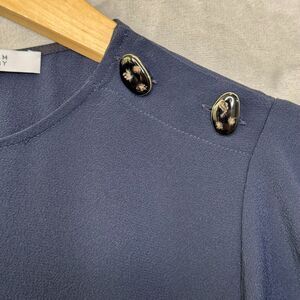 Derek Lam 10 Crosby Top Womens 2 Dark Blue Flutter Sleeve Agate Shoulder Button