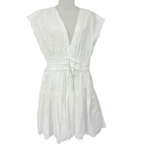 Derek Lam 10 Crosby Tora White V-Neck Tiered Cotton Poplin Dress Size 10 NEW