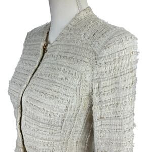 Derek Lam 10 Crosby Tweed Jacket Women Size 6 Cream Peplum Waist Zipper Accents