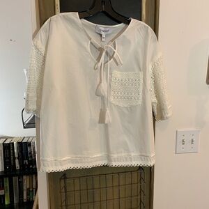 Derek Lam 10 Crosby White Poplin Crochet Sleeve Tassel Top Size 10