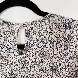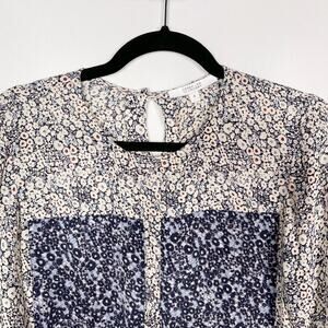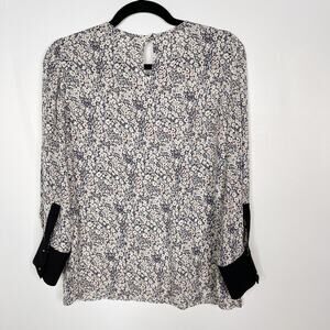Derek Lam 10 Crosby Womens 4 Blue Ivory Floral Silk Windowpane Blouse Keyhole