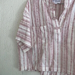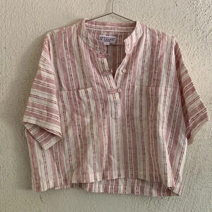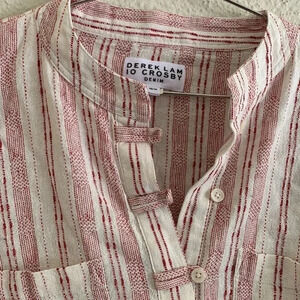 Derek Lam 10 Crosby Womens Striped Half Button Crop Tee Shirt Top White …
