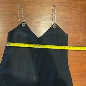 Black mini dress with gold chain straps, great condition and amazing quality! See my closet for more.