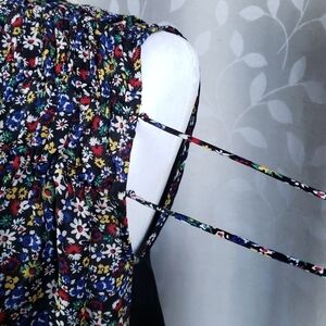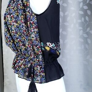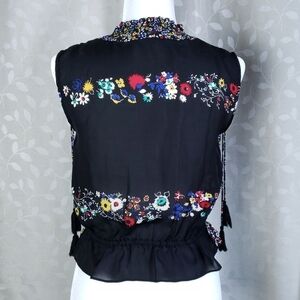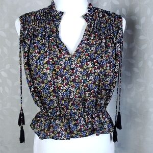 Derek Lam 100% Silk Dark Floral Tassel Sleeveless Blouse 10 Crosby Black Red 4