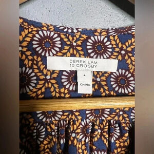 Derek Lam 100% silk tiered patterned dress with side tassel. Size 4