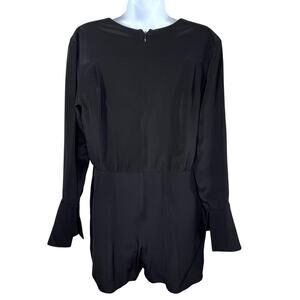 Derek Lam Black Silk Romper Long Bell Sleeve Keyhole Tie Front NWOT