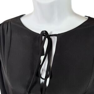 Derek Lam Black Silk Romper Long Bell Sleeve Keyhole Tie Front 6 NWOT