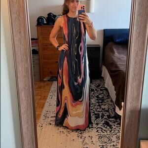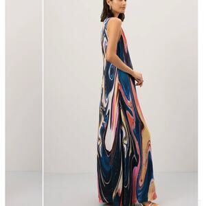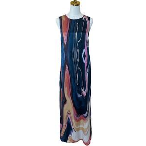 Easy breezy vibes from this gorgeous watercolr maxi slip dress glides across your curves with an a-line cut flattering in every way. Easy vacation, resort, summer, artsy vibes from this gorgeous lux maxi dress.