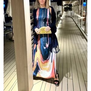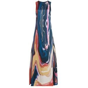Derek Lam Blue Watercolor Maxi Dress Size 8 A-line Satin Vacation Designer $650