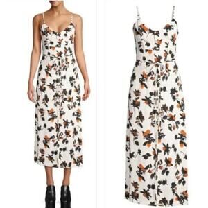 Derek Lam Camisole Dress Size 6 Floral Button Front V-Neck Slit Front Tie