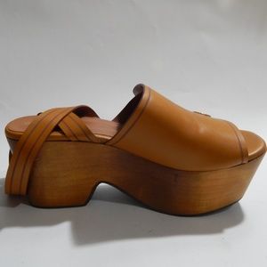 Derek Lam Cognac Platform Sandals with Gold Button Details