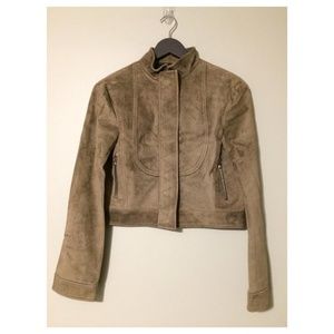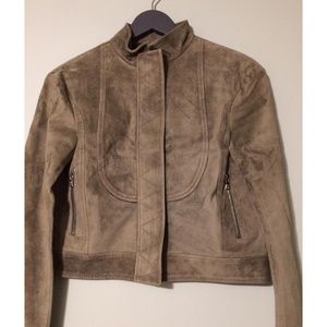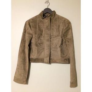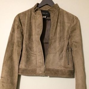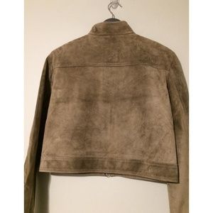 New Derek Lam Suede Leather Jacket. Spring Ready To Wear Collection Jacket. Estimated Size: 4 US. Color: Taupe/Green. Luxurious suede. Front zipper closure. Two side zip pockets. Lined. Silver tone hardware. Approximate measurements: 18.5" in length, 18" shoulder to shoulder, 25" sleeve. 100% genuine suede leather. Kindly Note: Jacket is a designer sample item; missing size and fabric contents labels.
