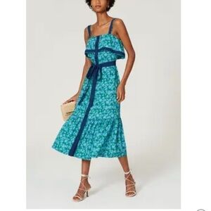 Cut with a ruffled popover and flounced hem for a flowy fit, this floral Derek Lam 10 Crosby dress offers a whole lot of fun.
