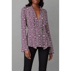 Derek Lam Collective Purple Print Tie Neck Blouse