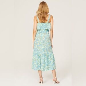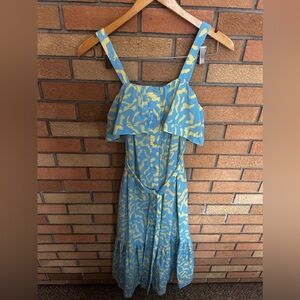 Derek Lam Collective RTR Blue Scribble Tie Midi Dress Tiered Size 36