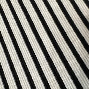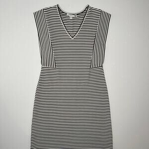 Derek Lam Collective Striped Cap Sleeve V-Neck Dress. Ribbed horizontal stripe fabric in rayon/polyester/Spandex. Black and white. Pullover style. Cap sleeves. Women size 42 EU / 6 US. Good used condition.