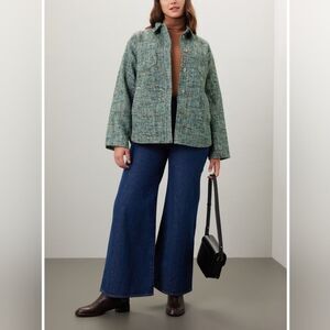 Derek Lam Collective Teal Tweed Button Up Shacket