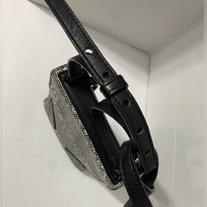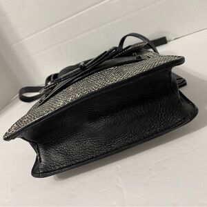 10 Crosby Derek Lam Crossbody in a lizard print leather and black leather, front single flap with magnetic snap closure. Front slid pocket. Silk lining with built in pocket.