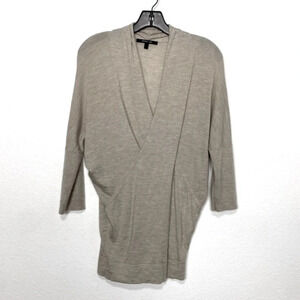 Derek Lam Crossover V-neck 3/4 Sleeve Taupe Cashmere Sweater Size Small