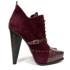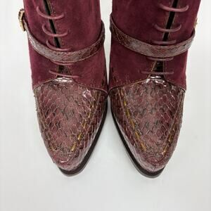 Derek Lam Donya Snakeskin & Suede Lace Up Ankle Boots Red Gold Details Size 8