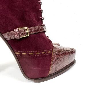 Derek Lam Donya Snakeskin & Suede Lace Up Ankle Boots Red Gold Details