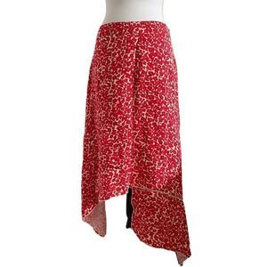 Derek Lam Floral Spotted Asymmetrical Silk Midi Skirt Red & White Ladies Size 6