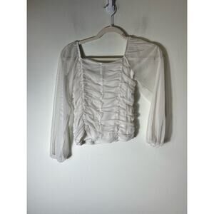Derek Lam IO Crosby Mixed Media Cream Colored Puff Sleeve Shirt Sz M